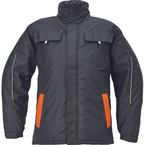 • férfi téli kabát • tépőzáras takarópánttal fedett cipzár • 2 oldalsó zseb, 2 mellzseb • 1 belső mobiltelefonzseb • rugalmas mandzsetta tépőzárral • fényvisszavető szegés