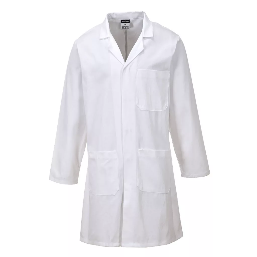 Klasszikus köpeny modell, rejtett patentos záródással, két oldalsó zsebbel és mellzsebbel. Magas minőségű 100% pamut alapanyagból készül.