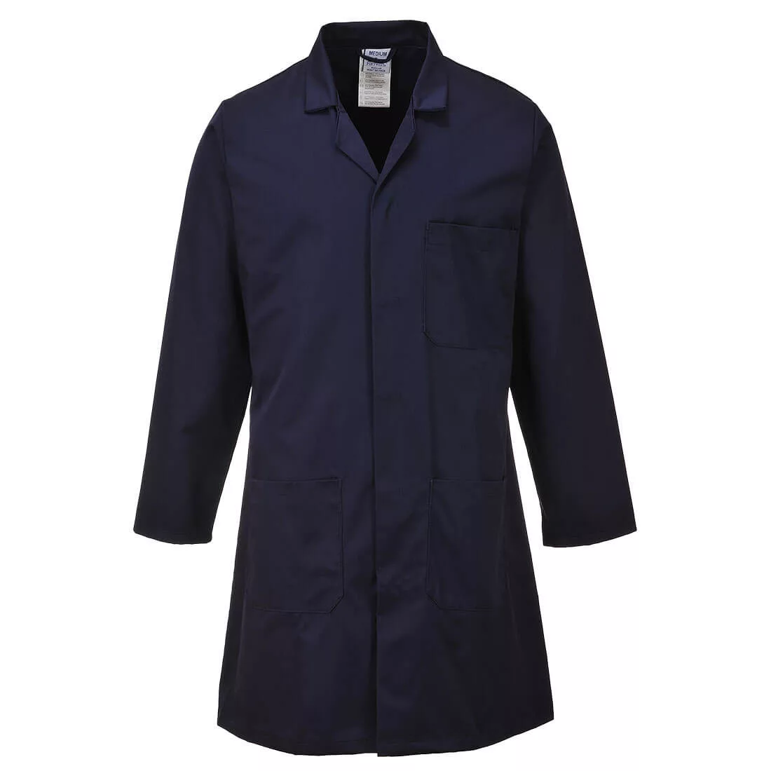 Kiváló köpeny minden munkaterületre. Rejtett patentos kivitel két oldalzsebbel és egy mellzsebbel. Beavatott és kiváló színtartást biztosít.