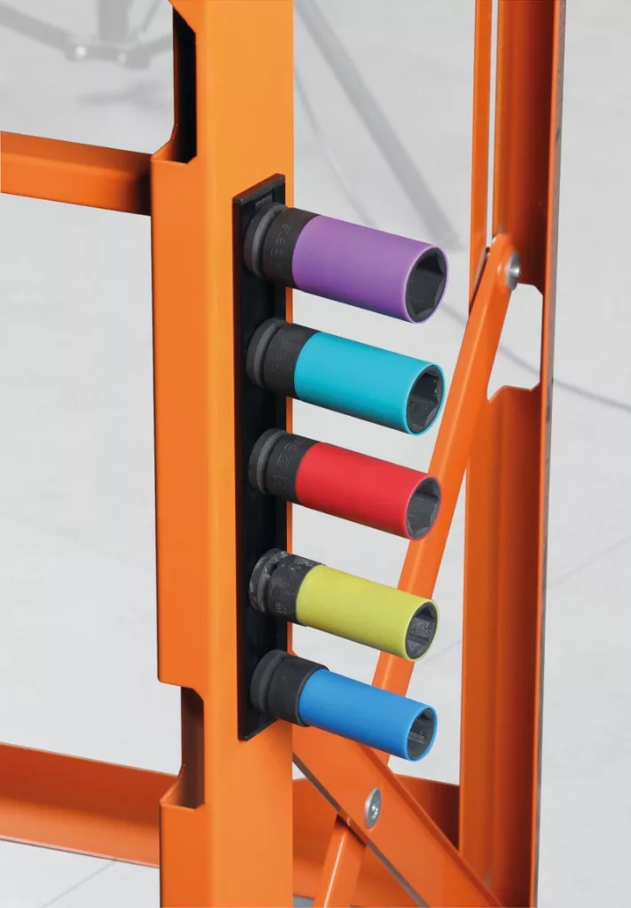 5 darabos gépi dugókulcs készlet kerékanyákhoz színes polimer betétekkel, 1/2”-os, mágneses tartósínen