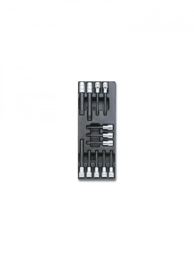 kemény hőformált műanyag tálca szerszámkészlettel 920PE1/2"-os színes hatszögű csavarhúzóbetét 5L-6L-7L-8L-10L 920TX1/2”-os Torx®-imbusz-dugókulcs T40L-T45L-T55L-T70L 920XZN1/2”-os XZN®-profilú imbusz-dugókulcs, krómozott, barnított fej M6L-M8L-M12L