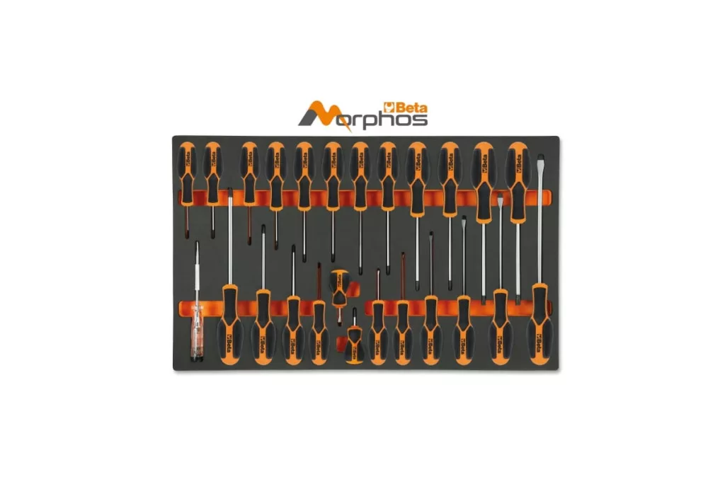 EVA habszivacs tálca Morphos csavarhúzókkal hasítottfejű, Phillips® és Torx® csavarokhoz