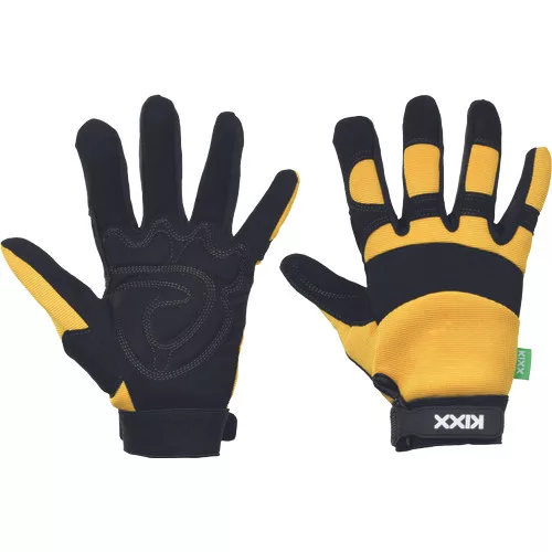 • műbőr védőkesztyű párnázott tenyérrel • alkalmas könnyű és erős igénybevételt jelentő munkákhoz is • tépőzáras mandzsetta • a kézfejen rugalmas textilből • EN420, EN388:2004