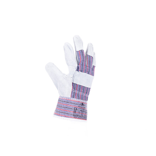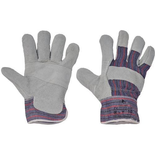 • egyetlen darab marha hasított bőrből készült védőkesztyű • bélelt tenyér, textil kézfej és mandzsetta, hüvelykujj és körömvédő