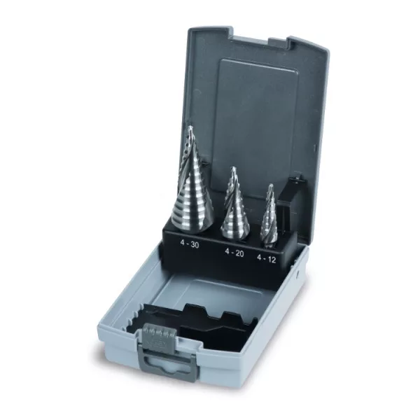 3 darabos, lépcsős, spirális hornyozású HSS-G fúrófej készlet gyors forgácseltávolításhoz. A lépcsős geometriának köszönhetően simábban bővíthetőek a furatok, ami alacsonyabb rezgést, jobb furatminőséget és könnyebb munkavégzést eredményez. Tiszta, pontos furatok.