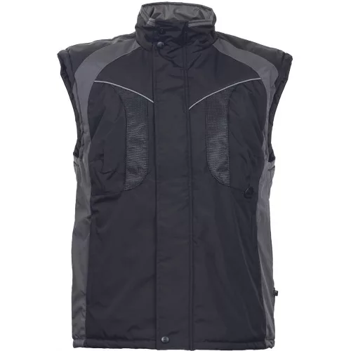 • vízálló bélelt mellény állógallérral • húzózsinórral szűkíthető alsó szegély • fényvisszavető részletek • nagyméretű cipzárhúzók • gépi hímzésre alkalmas