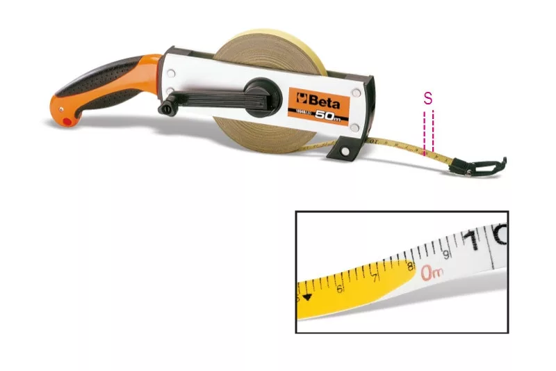 1694B/L50 Fogantyús mérőszalag, alumínium ház, lakkozott acélszalag, pontossági osztály: II