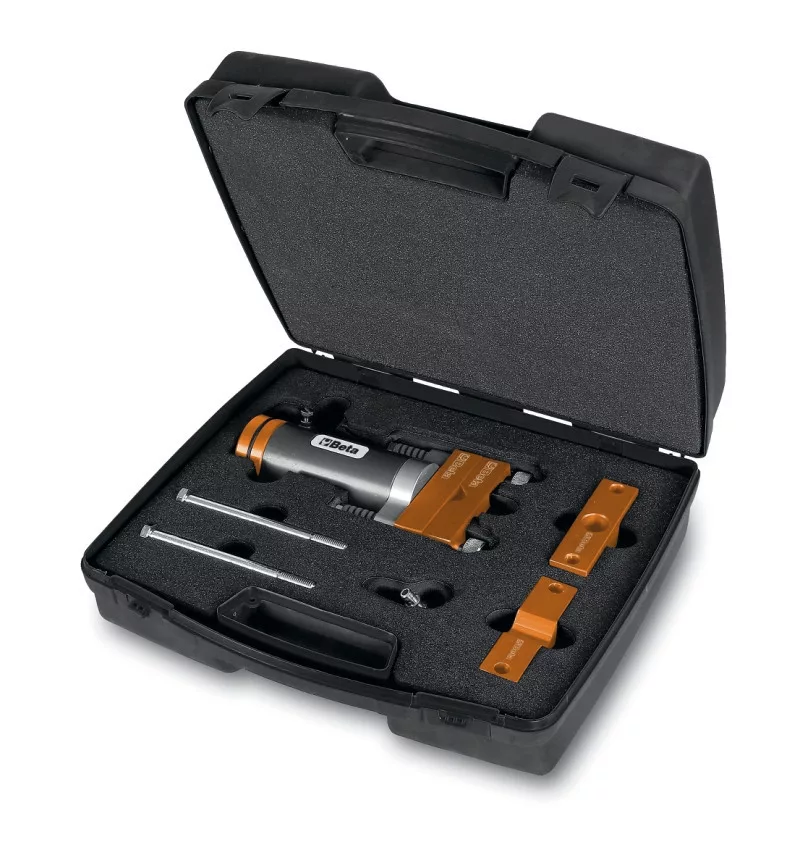 Univerzális - A hengerfej és az injektorok sérülése nélkül segíti a beragadt injektorok eltávolítását a foglalatból. - Bármilyen injektor kihúzó készlettel használható, csúszókalapáccsal vagy anélkül. - A szerszám rezgése közvetlenül a injektorra csatlakoztatott kihúzórúdra hat. - A rezgés intenzitása a szabályozószeleppel állítható az adott munkának megfelelően.