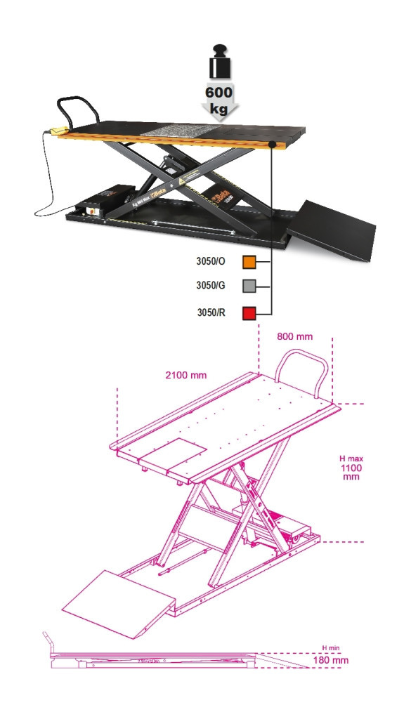 3050/O Elektro-hidraulikus motorkerékpár emelő, 600 kg