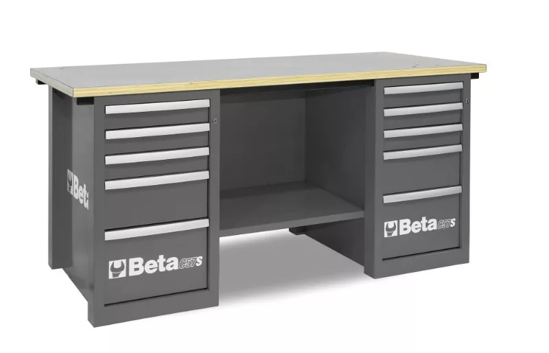 • Ez a modell két fiókos blokkal készült A fiókos blokk: 5 fiók teleszkópos és csapágyazott 588x367 mm 3 fiók 90 mm 1 fiók 180 mm 1 fiók 280 mm. A fiókokban hőformált tálcák Központi zár Multiplex munkalap, laminált rétegelt, három furattal, 1599F/150 satu rögzítéséhez (külön kell megrendelni).
