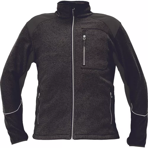 • cipzáras kardigán kötött, melírozott textilből • belül fésült, puha felület • kontrasztos softshell erősítésekkel a vállakon és az ujjakon • 1 cipzáras mellzseb • 2 cipzáras oldalzseb • a kabát alja zsinórral szűkíthető • dekoratív fényvisszavető szegély • hüvelykujj bújtató