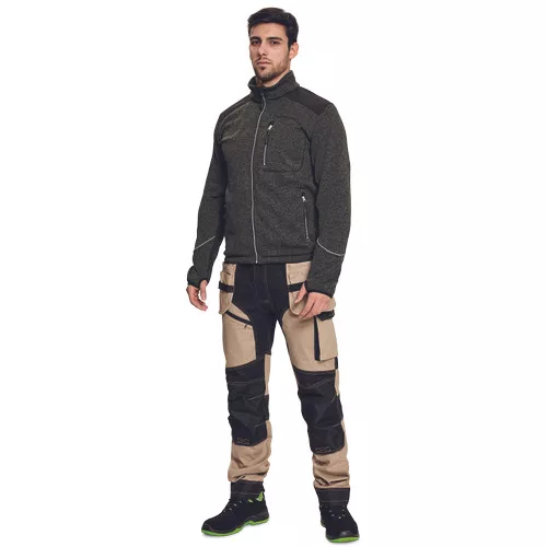 • cipzáras kardigán kötött, melírozott textilből • belül fésült, puha felület • kontrasztos softshell erősítésekkel a vállakon és az ujjakon • 1 cipzáras mellzseb • 2 cipzáras oldalzseb • a kabát alja zsinórral szűkíthető • dekoratív fényvisszavető szegély • hüvelykujj bújtató