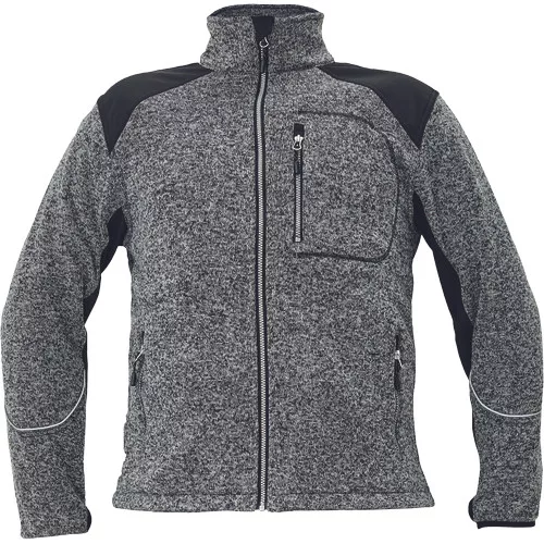 • cipzáras kardigán kötött, melírozott textilből • belül fésült, puha felület • kontrasztos softshell erősítésekkel a vállakon és az ujjakon • 1 cipzáras mellzseb • 2 cipzáras oldalzseb • a kabát alja zsinórral szűkíthető • dekoratív fényvisszavető szegély • hüvelykujj bújtató