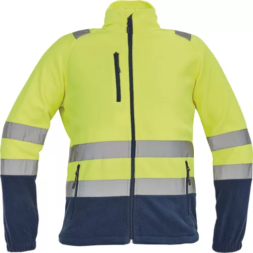 • Hi-Vis férfi polár pulóver 5 cm széles fényvisszavető csíkokkal • cipzáras kivitelben • 1 mellkasi és 2 cipzáras oldalzseb • rugalmas mandzsetták, a pulóver alja húzózsinórral szűkíthető