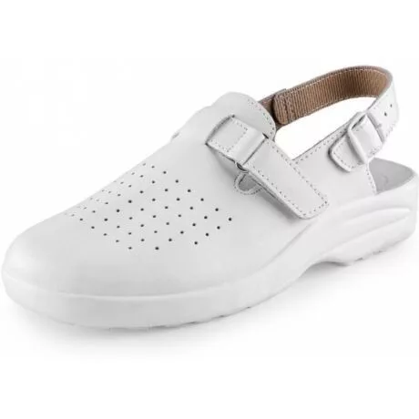 - Felső rész: perforált marhabőr<br />- Talp: PU csúszásgátló, antisztatikus<br />- Belső: poliészter<br />- Állítható sarokpánt<br />- EN ISO 20347:2012 OB E A SRC<br />