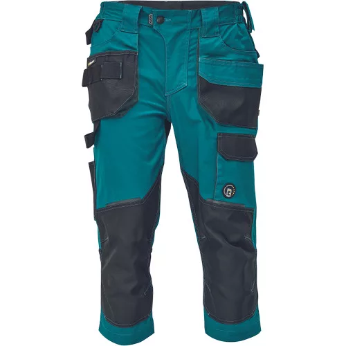 Dinamikus vonalvezetésű, modern szabású férfi 3/4-es nadrág, rugalmas, innovatív TRIFIBETEX® anyagból. Alacsony, gumírozott derékkal készül, láb- és üleprészen tartós, tripla varrásokkal. Praktikus kialakítás: tágas, multifunkcionális első zsebek szerszámtartó pánttal, 2 hátsó zseb Oxford erősítéssel, a combon telefontartó zseb tépőzáras zsebfedővel, külön zsebek vonalzónak, késnek, kalapácsnak, egyedi repülőzseb, D-gyűrű, és szerszámtartó hurok a derékpánton. A munkaruha színeivel harmonizáló fényvisszavető elemekkel egészítettük ki.