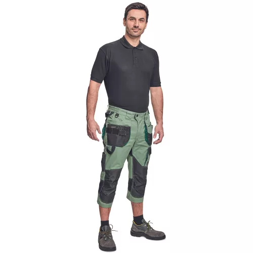 Dinamikus vonalvezetésű, modern szabású férfi 3/4-es nadrág, rugalmas, innovatív TRIFIBETEX® anyagból. Alacsony, gumírozott derékkal készül, láb- és üleprészen tartós, tripla varrásokkal. Praktikus kialakítás: tágas, multifunkcionális első zsebek szerszámtartó pánttal, 2 hátsó zseb Oxford erősítéssel, a combon telefontartó zseb tépőzáras zsebfedővel, külön zsebek vonalzónak, késnek, kalapácsnak, egyedi repülőzseb, D-gyűrű, és szerszámtartó hurok a derékpánton. A munkaruha színeivel harmonizáló fényvisszavető elemekkel egészítettük ki.