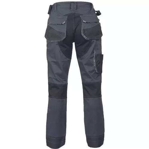 • ergonomikus szabás • alacsony, gumírozott derék • tartós tripla varrás a szárakon és az üleprészen • megerősített térdrész, térdvédő tartó zsebbel • tágas multifunkcionális első zsebek szerszámtártó pánttal • 2 hátsó zseb Oxford erősítéssel • a száron telefontartó zseb tépőzáras zsebfedővel • külön zsebek vonalzónak, késnek, kalapácsnak • egyedi kivitelű repülőzseb • D-gyűrű • szerszámtartó hurok a derékpánton • fényvisszavető részletek • leengedhető szárak • anyagösszetétel: 62% pamut, 35% poliészter, 3% elasztán • 260 g/m2