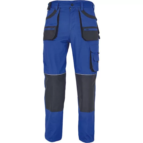• férfi munkanadrág • 6 multifunkciós zseb • OXFORD poliészter erősítésekkel az igénybevett részeken • térdvédő behelyezésére alkalmas, megerősített térdrész • leengedhető szárak • anyaga 100% pamut, 235g/m2