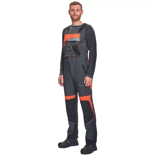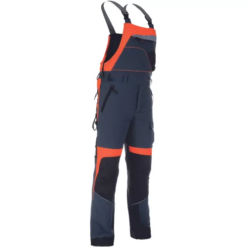 • egyedi sztreccs anyagból készült, lélegző és vízálló mellesnadrág • a sípcsontál három rétegű membrán biztosítja a vízállóságot • zseb a csavarkulcsoknak (láncfűrészhez) a nadrág jobb oldalán • vízálló cipzár • fényvisszavető kiegészítők • alacsony tömeg