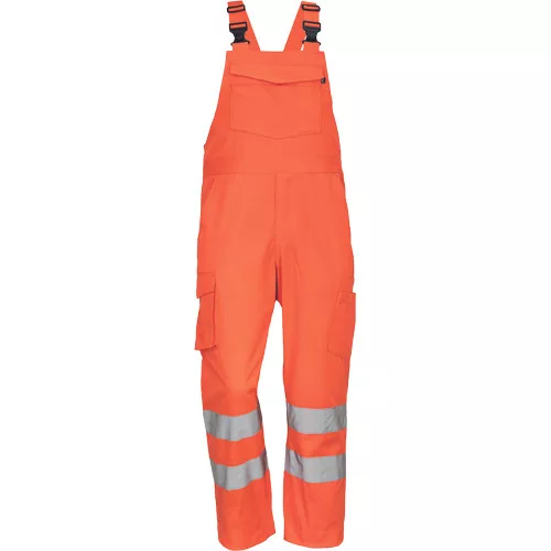 • férfi Hi-Vis mellesnadrág 7 cm széles fényvisszavető csíkokkal • rugalmas betét a hátsó részen • 2 oldalsó zseb + 1 érmezseb • 2 oldalzseb • 1 multifunkcionális mellzseb • rugalmas pántok műanyag csatokkal • meghosszabbítható szárhossz