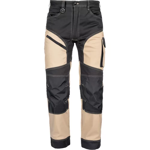 • minőségi férfi munkanadrág elasztikus anyagból • 2 oldalzseb • 2 hátsó zseb tépőzárral • 2 combzseb • megerősített térdzsebek térdvédő betét behelyezési lehetőséggel • hosszabbítható nadrágszárak akár 5 cm-rel • díszvarrás