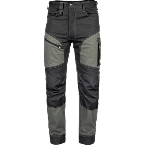 • minőségi férfi munkanadrág elasztikus anyagból • 2 oldalzseb • 2 hátsó zseb tépőzárral • 2 combzseb • megerősített térdzsebek térdvédő betét behelyezési lehetőséggel • hosszabbítható nadrágszárak akár 5 cm-rel • díszvarrás