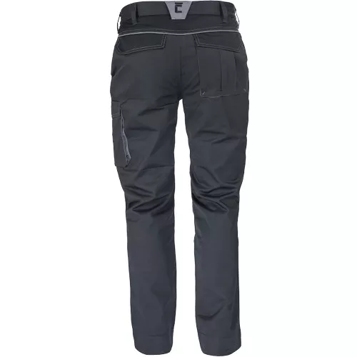 • női munkanadrág rugalmas derékpánttal • 2 oldalzseb • 1 bal combzseb • 2 hátsó zseb tépőzárral • térderősítés opcionálisan behelyezhető térdpárnával • fényvisszavető részletek • állítható szárhossz