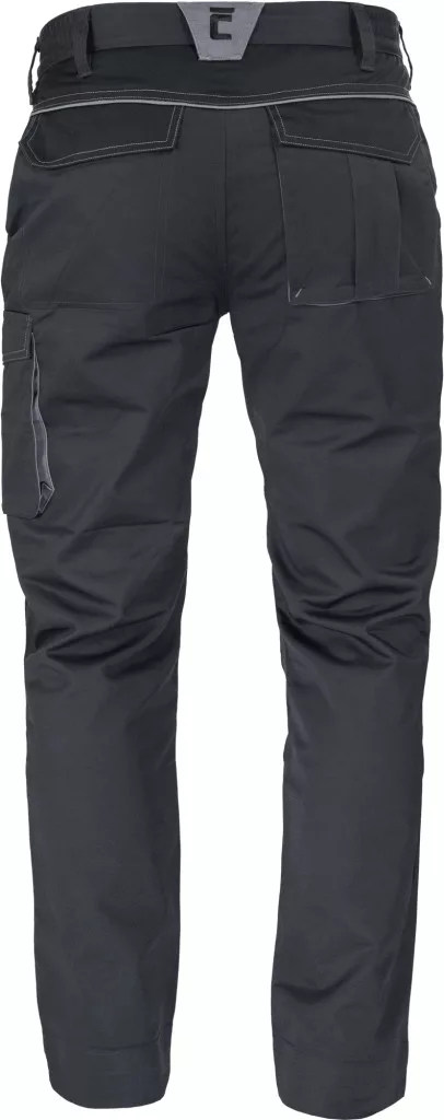 • férfi munkanadrág rugalmas derékpánttal • 2 oldalzseb • 1 bal combzseb • 2 hátsó zseb tépőzárral • térdrész erősítés opcionálisan behelyezhető térdpárnával • fényvisszavető részletek • állítható szárhossz