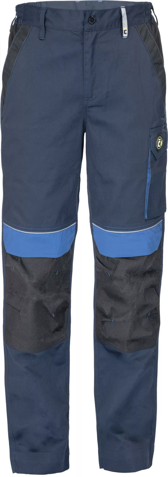 • férfi munkanadrág rugalmas derékpánttal • 2 oldalzseb • 1 bal combzseb • 2 hátsó zseb tépőzárral • térdrész erősítés opcionálisan behelyezhető térdpárnával • fényvisszavető részletek • állítható szárhossz