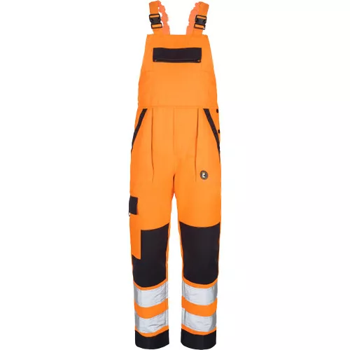 • férfi HI-VIS munkanadrág rugalmas derékrésszel • 2 oldalzseb • 1 combzseb • 1 mellzseb cipzárral • 2 hátulsó zseb tépőzárral • 2 bevarrt, 7,5 cm széles fényvisszavető csík a lábszáron • megerősített térdrész • hosszabbítható szárhossz