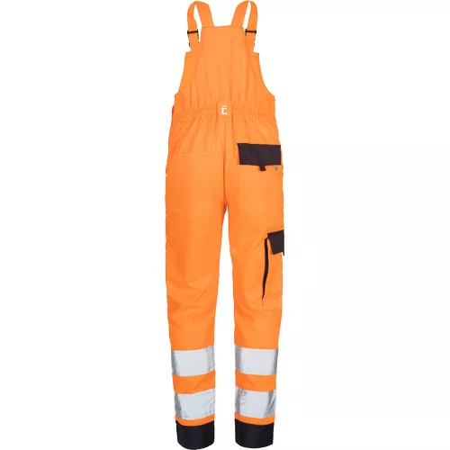 • férfi HI-VIS munkanadrág rugalmas derékrésszel • 2 oldalzseb • 1 combzseb • 1 mellzseb cipzárral • 2 hátulsó zseb tépőzárral • 2 bevarrt, 7,5 cm széles fényvisszavető csík a lábszáron • megerősített térdrész • hosszabbítható szárhossz