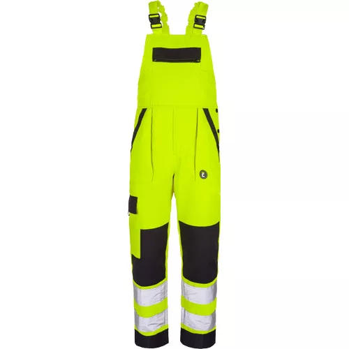 • férfi HI-VIS munkanadrág rugalmas derékrésszel • 2 oldalzseb • 1 combzseb • 1 mellzseb cipzárral • 2 hátulsó zseb tépőzárral • 2 bevarrt, 7,5 cm széles fényvisszavető csík a lábszáron • megerősített térdrész • hosszabbítható szárhossz