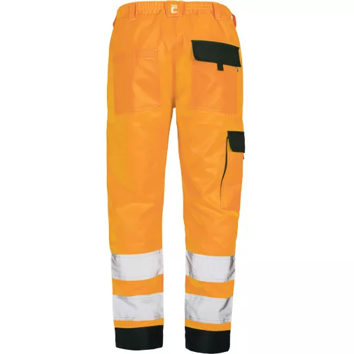 • Férfi HI-VIS munkanadrág rugalmas derékrésszel • 2 oldalzseb • 1 combzseb • 2 hátulsó zseb tépőzárral • 2 bevarrt, 7,5 cm széles fényvisszavető csík a lábszáron • megerősített térdrész • hosszabbítható szárhossz