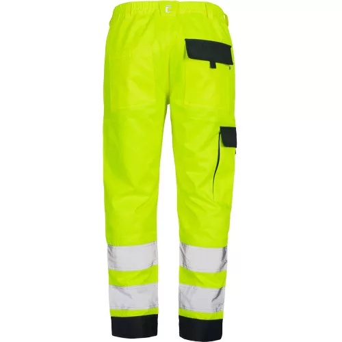 • Férfi HI-VIS munkanadrág rugalmas derékrésszel • 2 oldalzseb • 1 combzseb • 2 hátulsó zseb tépőzárral • 2 bevarrt, 7,5 cm széles fényvisszavető csík a lábszáron • megerősített térdrész • hosszabbítható szárhossz