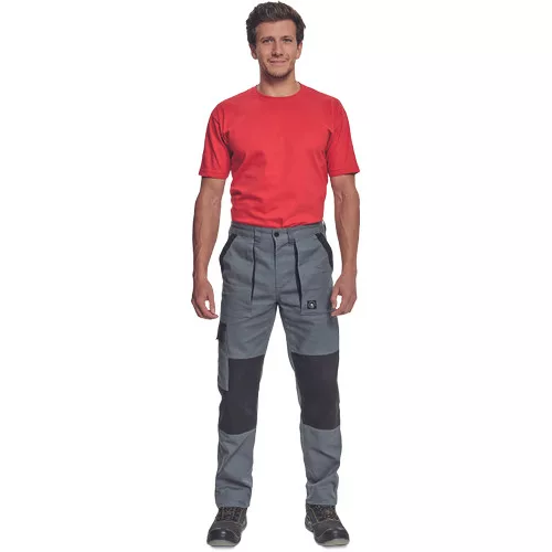 • férfi munkanadrág rugalmas derékkal • 2 első zseb, 1 oldalzseb, 2 hátsó zseb • megerősített térdrész • leengedhető szárak