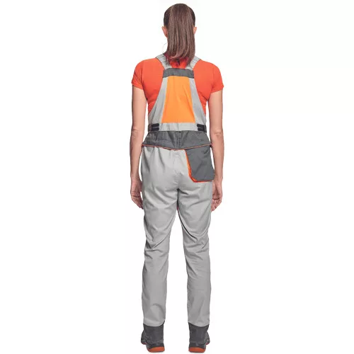 • női munkanadrág könnyű pamut-PES kevertszálas anyagból • nőies szabás • dekoratív paszpol kontrasztos színekkel • légáteresztő, köszönhetően hálós betéteknek • zsebfedővel fedett zsebek • a nadrágszárak hossza 5 cm-rel meghosszabbítható • 2 oldalsó zseb • 1 hátsó zseb • 1 mellkasi zseb, belül D-gyűrűvel •tartós anyagú • puhább, hajlékonyabb szövet
