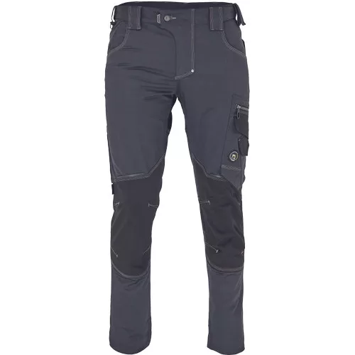 • férfi munkanadrág innovatív rugalmas Trifibetex® anyagból CORDURA® betétekkel • elöl 2 ékzseb • hátul 2 tépőzáras foltzseb • bal oldalon nagy multifunkciós zseb • jobb oldalon multifunkciós zseb vonalzónak • kés- és ceruzatartó • fém "D" gyűrű • rugalmas derék