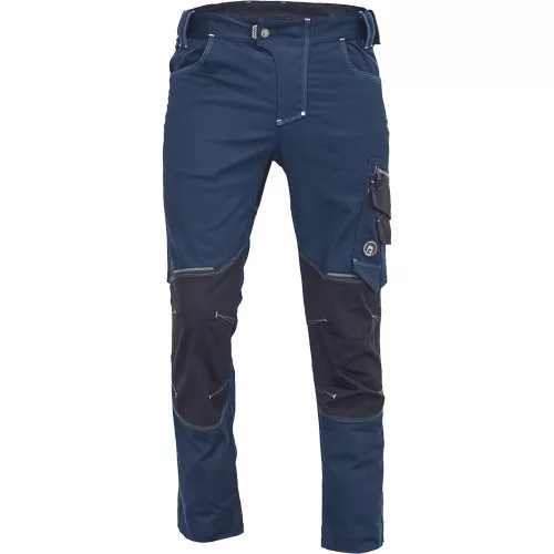 • férfi munkanadrág innovatív rugalmas Trifibetex® anyagból CORDURA® betétekkel • elöl 2 ékzseb • hátul 2 tépőzáras foltzseb • bal oldalon nagy multifunkciós zseb • jobb oldalon multifunkciós zseb vonalzónak • kés- és ceruzatartó • fém "D" gyűrű • rugalmas derék