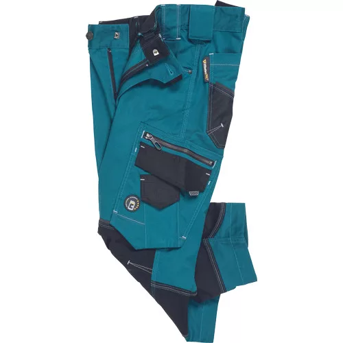 • férfi munkanadrág innovatív, rugalmas TrifibetexPRO® anyagból • CORDURA® erősítés • 2 ékzseb elöl • 2 tépőzáras foltzseb hátul • bal oldalon nagy multifunkciós zseb • jobb oldalon multifunkciós zseb vonalzónak • kés- és ceruzatartó • kalapácstartó • fém "D" gyűrű • rugalmas derék • fényvisszavető részletek • dekoratív tripla varrás kontrasztos színnel