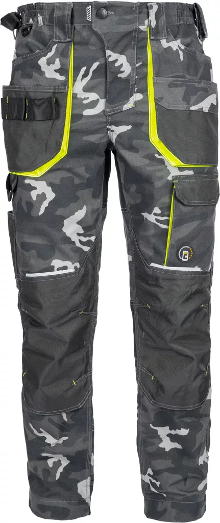 • férfi nadrág rugalmas derékkal és többfunkciós zsebekkel • megerősített térdrész és térdzseb Oxford 600D anyagból térdvédő behelyezéséhez • ellenálló hármas fedőző varrás az üleprészen és a meghosszabítható szárakon • modern terepmintával