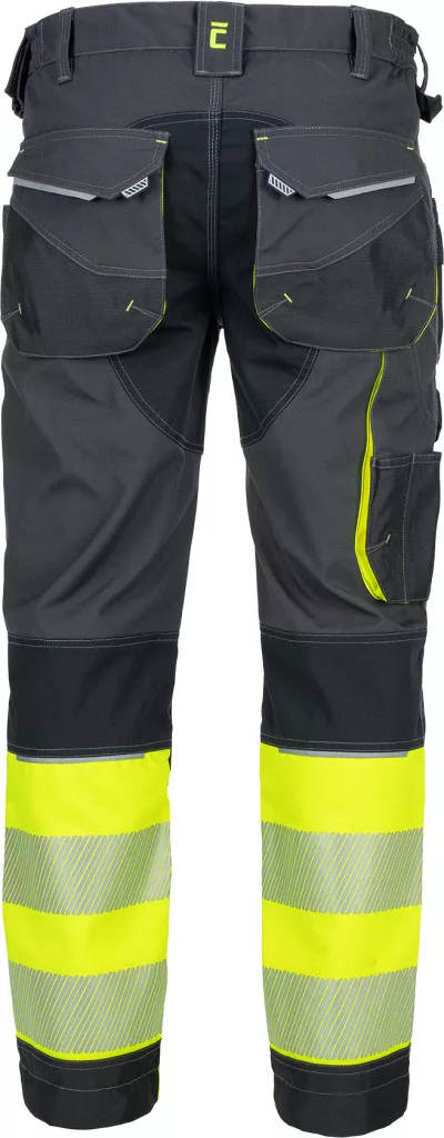 • Férfi jólláthatósági nadrág rugalmas derékkal és többfunkciós zsebekkel, 7 cm-es szegmentált fényvisszavető csíkokkal. Megerősített térdrész és térdzseb Oxford 600D anyagból térdvédő behelyezéséhez. Ellenálló hármas fedőző varrás az üleprészen és a meghosszabbítható szárakon.