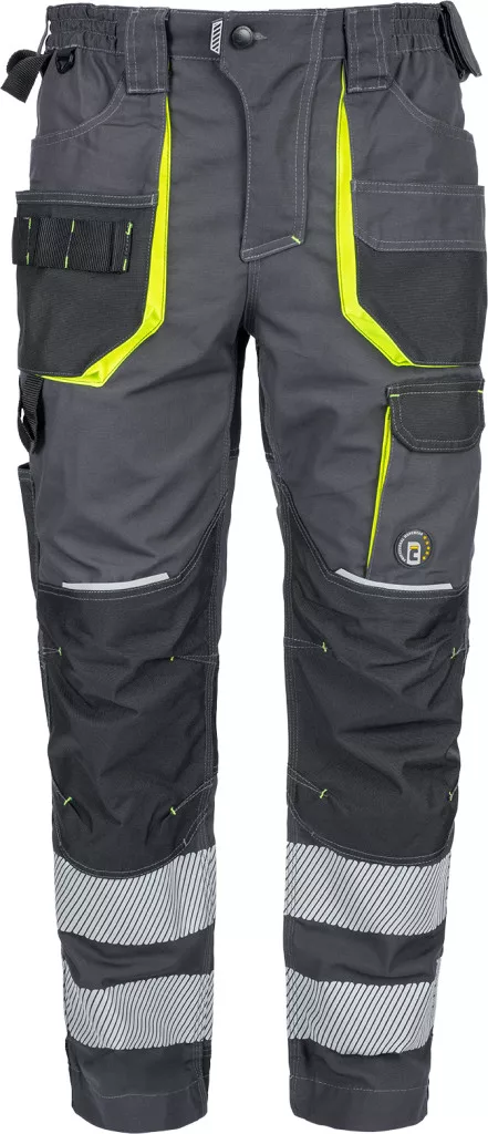 • férfi nadrág rugalmas derékkal és többfunkciós zsebekkel, 7 cm-es szegmentált fényvisszavető csíkokkal • megerősített térdrész és térdzseb Oxford 600D anyagból térdvédő behelyezéséhez • ellenálló hármas fedőző varrás az üleprészen és a meghosszabítható szárakon