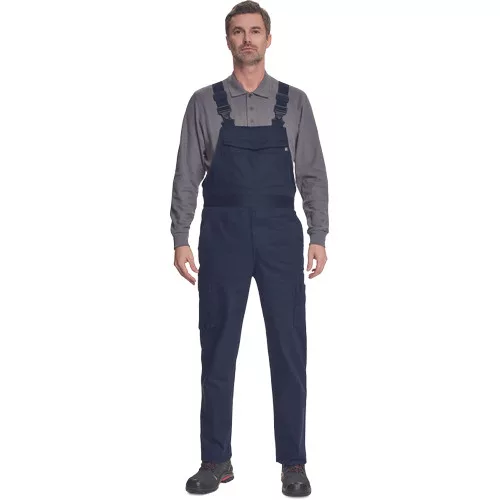 • férfi mellesnadrág • rugalmas betét a derékrészen • 2 első zseb + 1 érmezseb • 2 oldalzseb • 1 multifunkcionális mellzseb • rugalmas pántok műanyag csatokkal • leengedhető szárak • 195 g/m2