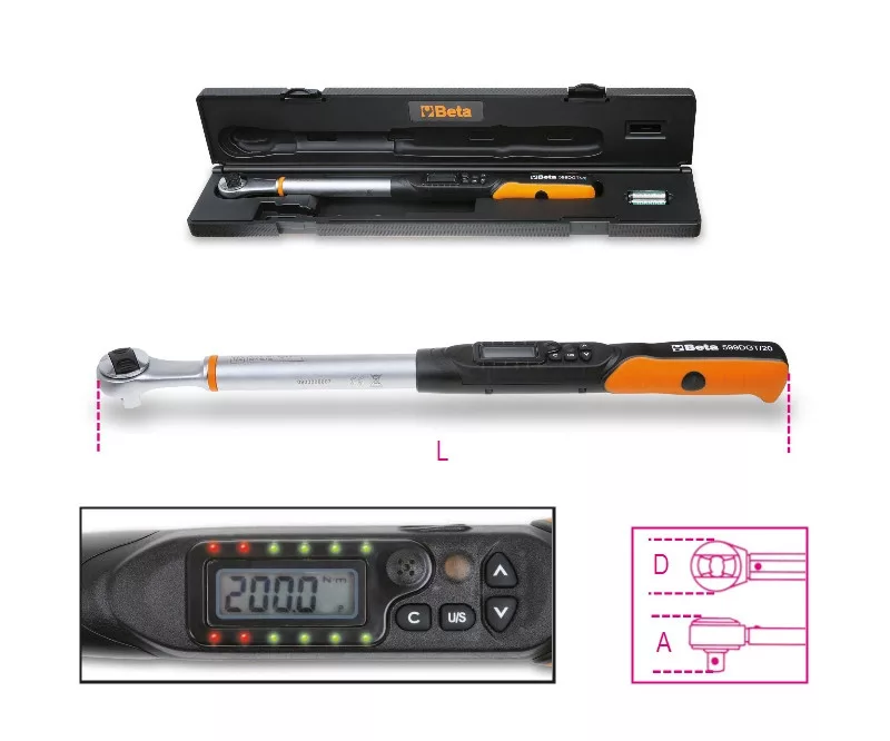 599DGT/30 elektronikus nyomatékkulcs irányváltós racsnival jobb és bal oldali meghúzáshoz meghúzási pontosság +/- 2% jobb irányban, ± 3% bal irányban 1/2"