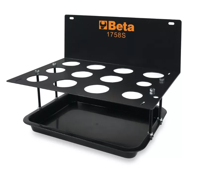 Csepptálcával. A tölcsérek és gyorscsatlakozók kényelmes tárolására.