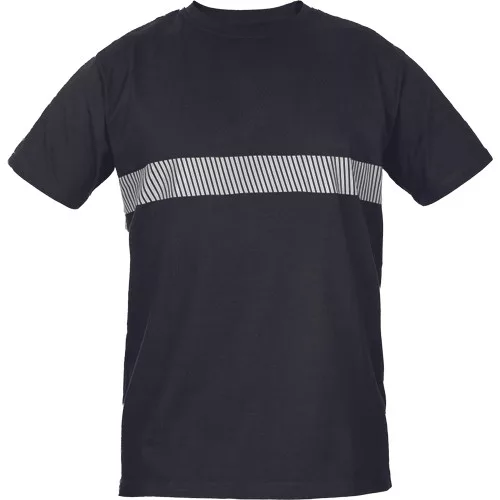 • uniszex pamut póló fényvisszavető szegmentált csíkokkal a mellkason és a hát felső részén.