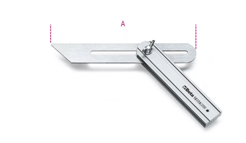 1672A 200 Állítható szögsablon csúszó szárral a szár krómozott acélból, az alaplap alumíniumból készült