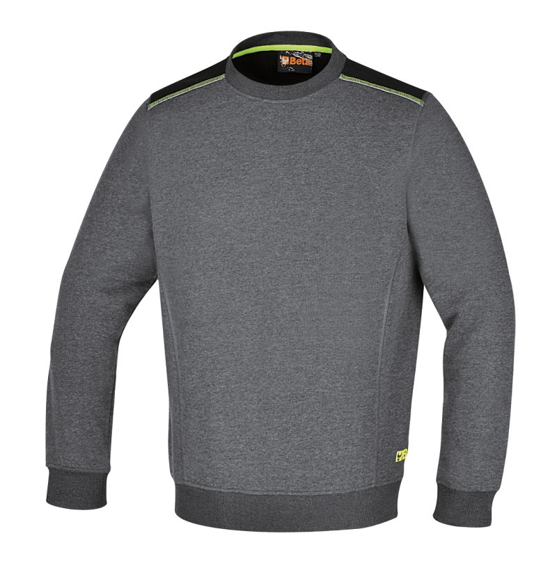 Kerek nyakú, hosszú ujjú felső, 240 g/m2, 60% pamut, 40% poliészter, melange szürke – fekete betétekkel XS