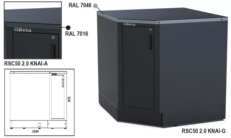 RSC50 2.0 KNAI-A Alsó sarok modul az RSC50 2.0 műhelyberendezés összeállításhoz